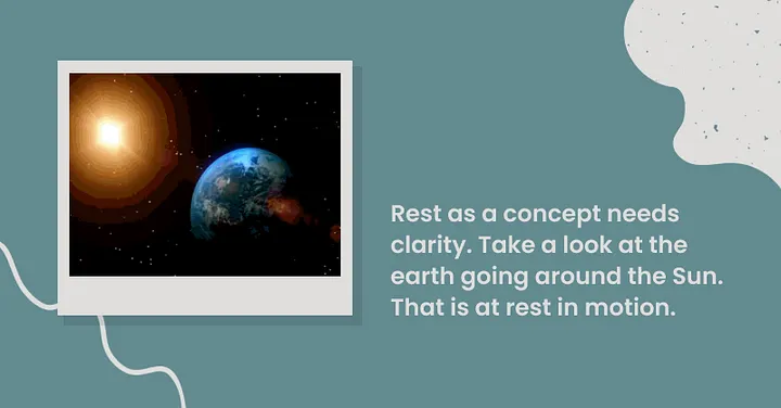 Rest is the continued orderly motion/activity with no friction/agitation. Being organised in the self and playing the designated role in the bigger system.